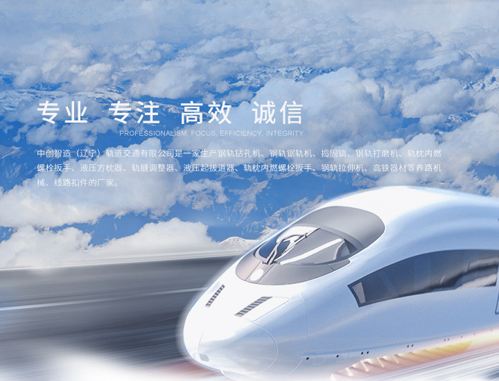 中創(chuàng)智造(遼寧)軌道交通有限公司是一家生產(chǎn)鋼軌鉆孔機(jī)、鋼軌鋸軌機(jī)、搗固鎬、鋼軌打磨機(jī)、軌枕內(nèi)燃螺栓扳手、液壓方枕器、軌縫調(diào)整器、液壓起拔道器、軌枕內(nèi)燃螺栓扳手、鋼軌拉伸機(jī)、高鐵器材等養(yǎng)路機(jī)械、線路扣件的廠家。